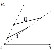 - По графикам процессов (см. рисунок) определить, сжимался или расширялся газ во время нагревания. В каком из процессов изменение объёма было больше?