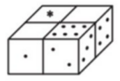 - Галя обнаружила, что сумма точек на противоположных гранях игрального кубика всегда равна семи. Она взяла четыре одинаковых игральных кубика и склеила их, приложив друг к другу одинаковыми гранями. После этого Галя некоторые грани закрасила белой краской. Сколько точек было на грани, отмеченной «звёздочкой»?