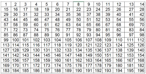 - Все натуральные числа от 1 до $14^2$ последовательно в порядке возрастания расставлены в клетки таблицы размером $14\times14$. Как нужно вычеркнуть одну строку и один столбец так, чтобы сумма всех оставшихся чисел была чётной?