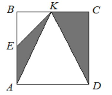 Ответ: $0{,}12$. - Площадь квадрата \(ABCD\) равна \(8\) м\(^2\). Точки \(E\) и \(K\) — середины его сторон. Определите площадь закрашенной части.