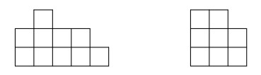 - У Димы есть площадка \(3 \times 5\), на которую он поставил несколько кубиков с ребром 1. На рисунках даны виды спереди и сбоку того, что получилось. Какое наименьшее число кубиков мог поставить Дима?