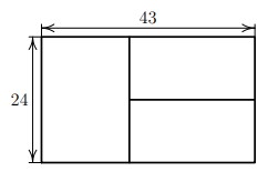 - Саша разрезал прямоугольник 43 × 24 см на три прямоугольника так, что у всех трёх получился один и тот же периметр. Найдите этот периметр.
