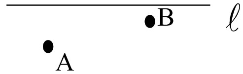 - На прямой \(\ell\) найти точку \(C\), чтобы сумма расстояний \(AC + BC\) была наименьшей.
