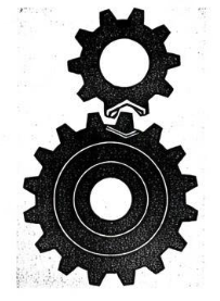 Решение. По рисунку видно, что у маленькой шестеренки 10 зубцов, а у большой 16 зубцов. Значит за 1 оборот маленькой шестеренки большая повернется на $\frac{10}{16}=\frac{5}{8}$ оборота. Чтобы силуэт снова оказался в начальном положении, обе шестеренки должны вернуться в свои начальные положения. Маленькая шестеренка возвращается после целого числа своих оборотов, а для большой число оборотов тоже должно быть целым. Наименьшее число оборотов маленькой шестеренки, при котором $\frac{5}{8}$ от этого числа будет целым, равно 8.