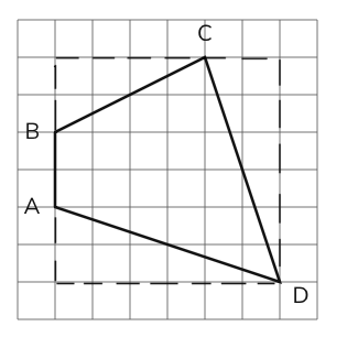- Посчитайте площадь четырехугольника $ABCD$ (в клеточках) на картинке справа.