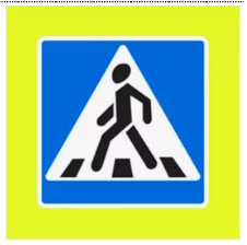 - Дорожный знак «Пешеходный переход» состоит из синего квадрата (на рис. тёмно-серый) с белым треугольником в нём. Для повышенного внимания вокруг знака установили жёлтую рамку (на рис. светло-серая) шириной 10 см, после чего периметр нового знака с рамкой стал равен 360 см.