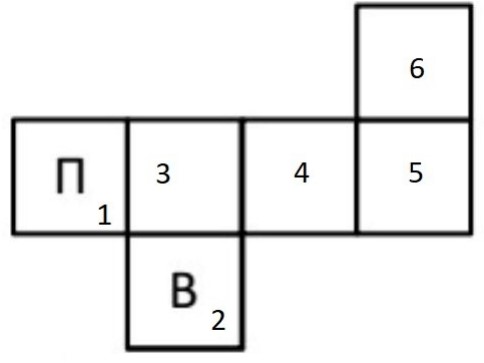 - Верхняя (В) и нижняя (Н) грани расположены на противоположных квадратах.
