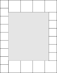 - Серый прямоугольник окружён каймой из больших и маленьких квадратов. Все большие квадраты одинаковые и все маленькие тоже одинаковые. Длина серого прямоугольника равна 48~см. Найдите его ширину.