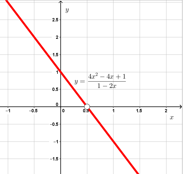 Задача 3 Постройте график функции \[y=\frac{4x^2 - 4x +1}{1 - 2x}.\]