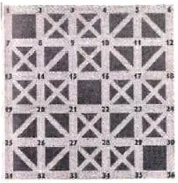 - В Ловозёрах есть большая шивера, карту которой можно видеть на рисунке снизу. Камни в этой шивере с человеческий рост, что не позволяет видеть, что происходит за камнем. Шестеро нянечек пошли выкупывать грушу в этой шивере. Им нужно встать так, чтобы каждый участок шхеры был виден хотя бы одной нянечкой (нянечки универсальны - они смотрят сразу во все стороны). Одна из нянечек заняла перекрёсток со своим любимым номером - 34. На каких местах встали остальные нянечки? На рисунке камни тёмные, вода светлая. И нянечки стоят в воде.