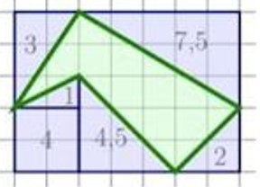 Решение: Фигура вписана в прямоугольник $7 \times 5$, площадь которого 35. Вычитаются площади треугольников: