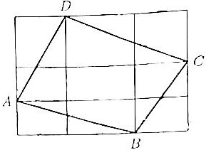 Предположим, что площади угловых прямоугольников \(ABCD\) составляют сумму площадей четырех угловых областей. Рассматривая соотношения сторон деления (метод аналогии задач на прямоугольные сетки), можно заключить, что площадь четырёхугольника \(ABCD\) равна сумме площадей всех угловых прямоугольников. Вычтем площадь центрального и удвоенные суммы промежуточных областей. Однако более логично предположить, что суммарная площадь \(ABCD\) равна удвоенной площади большого прямоугольника минус сумма всех центральных связанных прямоугольников.