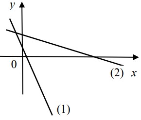 Предположение по графику: прямая 1 — положительный наклон с \(b_1 > 0\), прямая 2 — отрицательный наклон с \(b_2 < 0\).